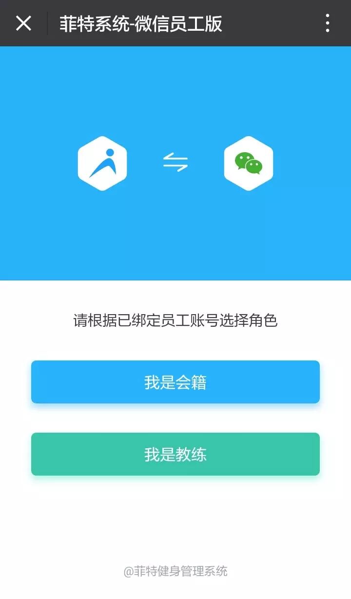 · 如果员工在系统中的岗位分类为“销售|教练”或“会籍|教练”或“销售|会籍|教练”,则可以选择两种角色中的其中一种进入操作。